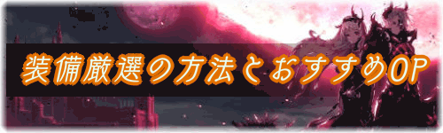 キャラが身につけられる装備は7種類あり、武器、宝物、遺物を除いた、防具、補助装備、装身具、オーブの4種類のOPを性能に合わせて厳選していく。