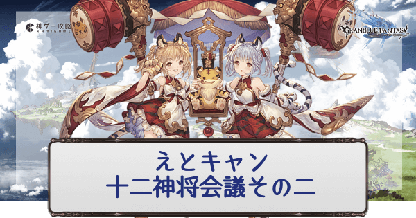 グラブル(グランブルーファンタジー)の復刻シナリオイベント「えとキャン 十二神将会議その二」の攻略を掲載。干支キャン/えときゃんの開催スケジュールやイベント限定報酬、イベントの進め方や登場人物についても紹介。十二神将イベント攻略の参考にどうぞ。