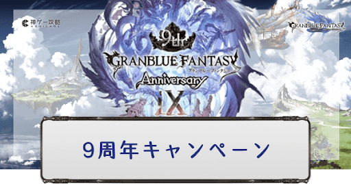グラブルで開催される「9th Anniversaryキャンペーン(CP)」の詳細を掲載。実施されるキャンペーンの内容、キャンペーンごとの開催日など詳しく紹介。効率の良いゲームプレイの参考にどうぞ。