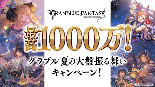 グラブルのサマーキャンペーンである「最高1000万!グラブル夏の大盤振る舞いキャンペーン」の内容と開催期間について記載。報酬や参加方法についても記載しているので、グラブルをプレイする際の参考にどうぞ。