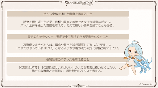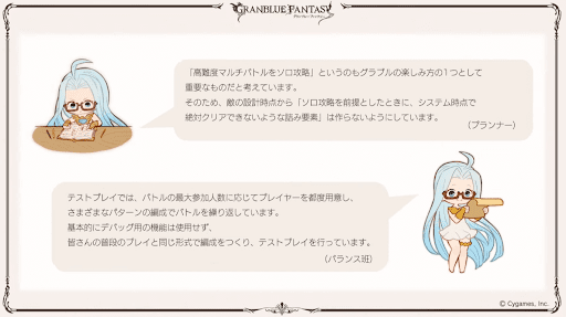 理由としては、「ヒヒイロカネ」の代替アイテムにも関することだが、作りますと告知した場合に「ヒヒイロカネ」を使わない方がいいのではないかと思ってしまって、先に進めなくなってしまうユーザーを想定しているため。今回はQ&Aなのでそう回答はしているが、毎回古戦場で取って強化して欲しいという認識。