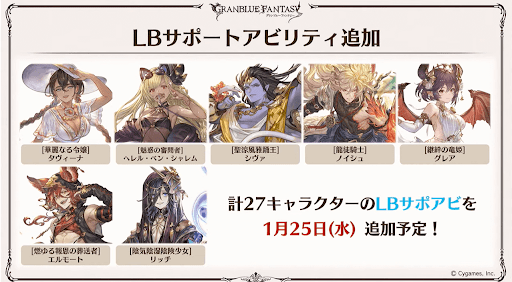 | 1月25日 | 27キャラにLBサポアビ追加 |
