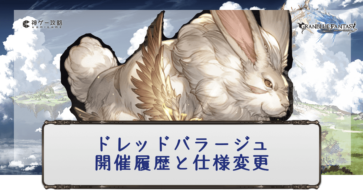 グラブルで開催されるイベント「ドレッドバラージュ(ドレバラ)」の開催履歴をまとめて掲載。開催年月や有利属性、開催時に行われた敵のHPや防御値もまとめているので攻略の参考にどうぞ。