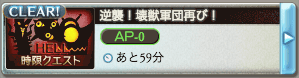 | 消費AP | 獲得Rankポイント | 獲得EXP | 初回クリア報酬 |