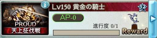 | クエスト名 | 「天上征伐戦 PROUD Lv150 黄金の騎士」 |