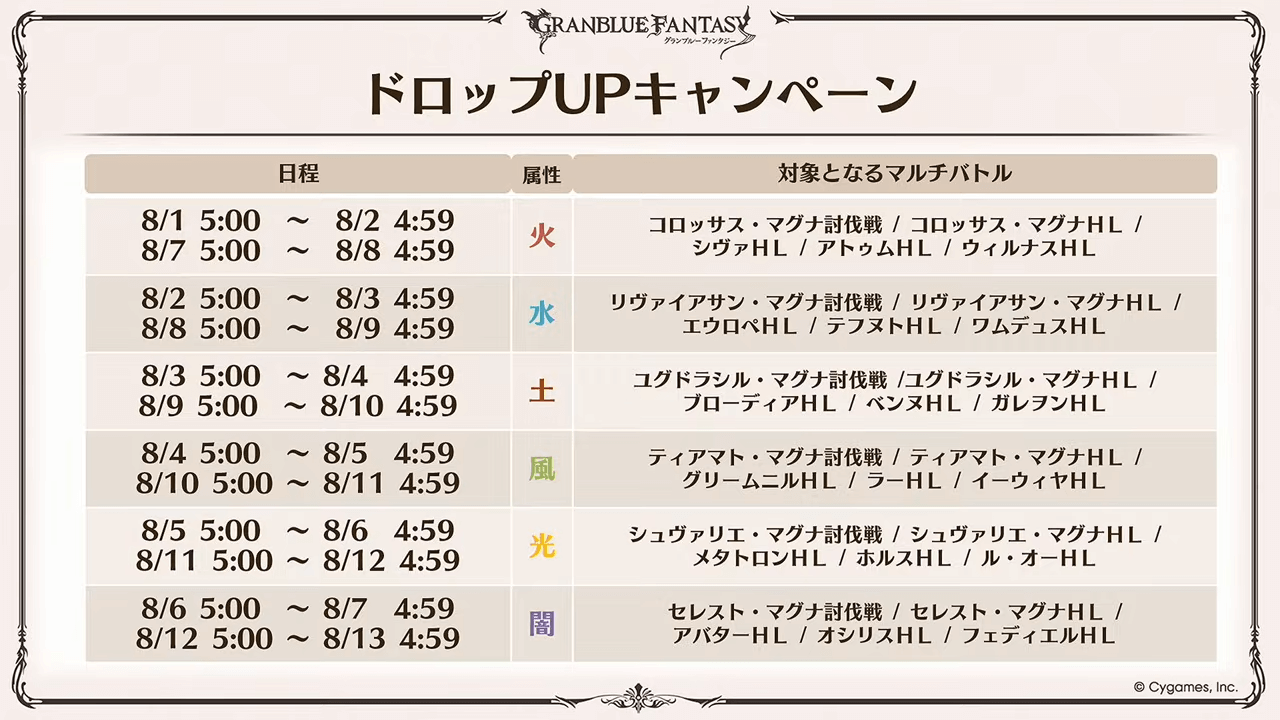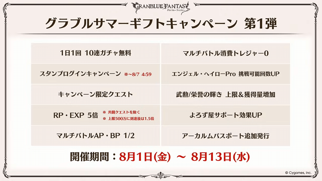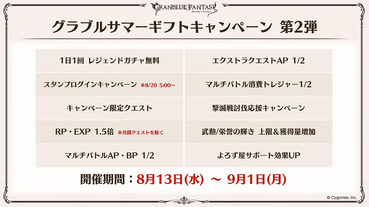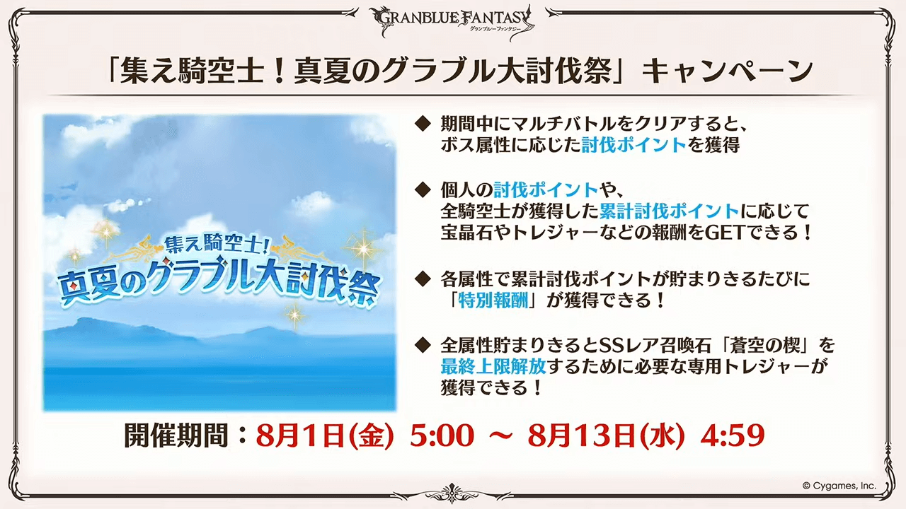 | グラブル大討伐祭CP | 8月1日~8月13日 |