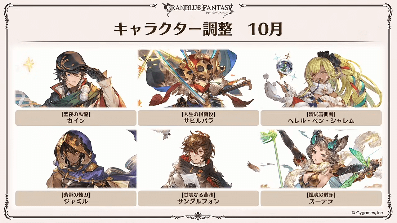 | 10月中 | 【10月】キャラクター調整 |