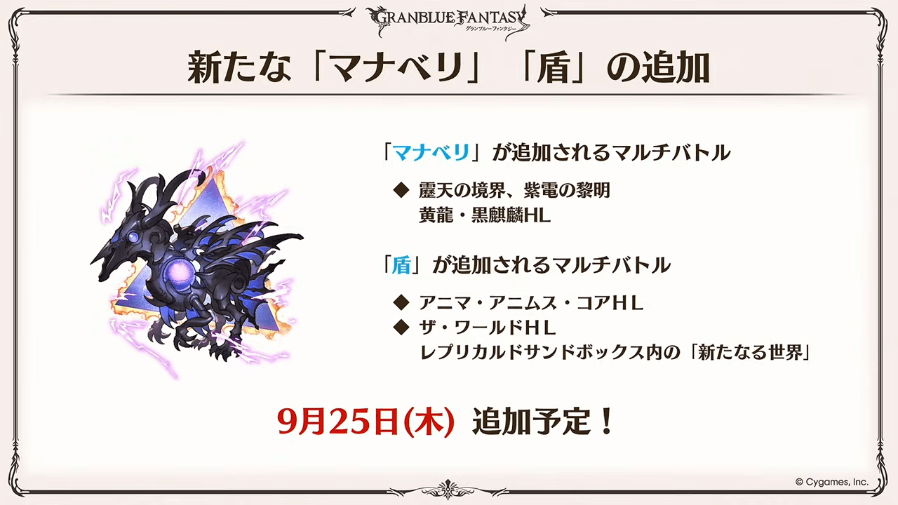 | 9月25日 | 新たな「マナベリ」「盾」追加 |
