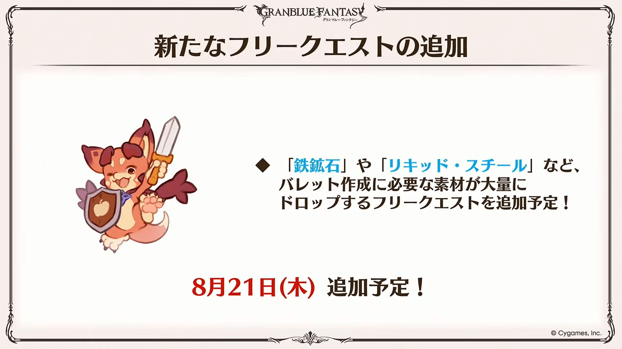 | 8月21日 | バレット素材用のフリクエ追加 |