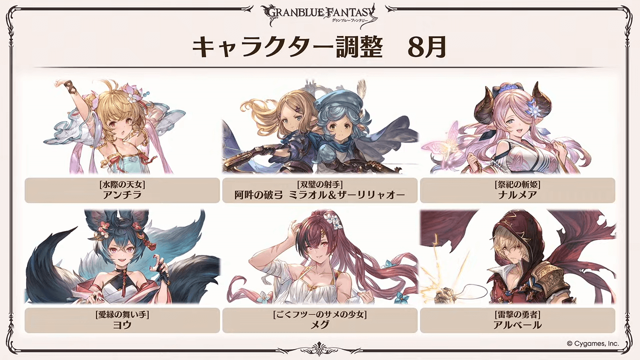 | 8月中 | 【8月】キャラクター調整 |
