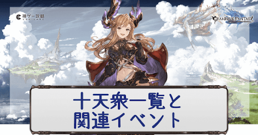 グラブル(グランブルーファンタジー)に登場する十天衆(じゅってんしゅう)と関連キャラを一覧で紹介。十天衆が関連するイベントや称号、各種スキンも掲載。十天衆の年齢や身長などの設定も掲載しているので参考にどうぞ。