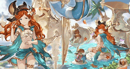 | 砂の島にて雨の星晶獣を退け悲哀の星晶獣と心通わせた小さな巫女は、運命から解き放たれ自由の空へと飛び立った。故郷と似て非なる砂地を訪れた彼女は、雄大なる海に畏敬の念を抱き同時に心躍らせる。 |