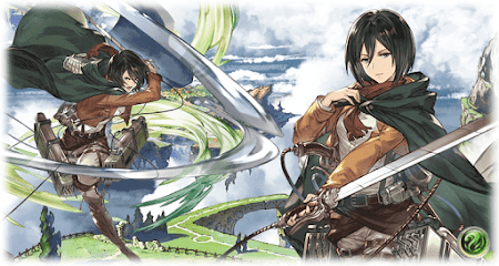 グラブルの進撃の巨人コラボイベント「タイタニック・イェーガー」にて加入するのSRキャラ「ミカサ」の最新の評価、ミカサのリミットボーナス(LB)、ミカサの運用方法や上限解放素材について掲載しています。バトルメンバー編成の参考に活用ください。
