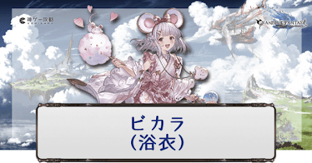 グラブルに登場する光属性のSSRキャラクター「ビカラ(浴衣)」の評価を掲載。浴衣ビカラのリミットボーナス(LB)や指輪、耳飾り、覚醒タイプに加えて、運用方法や編成例、上限解放素材についても掲載。バトルメンバーに編成する際の参考にどうぞ。