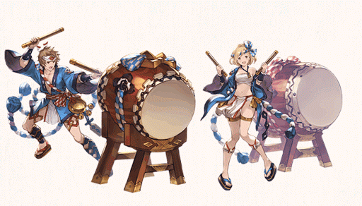ドラムマスターは、攻撃力が下がる代わりに毎ターンの連続攻撃によって奥義ゲージを高速で回収できる。味方への分配や、属性防御DOWNを敵に付与できるやや特殊な支援ジョブ。