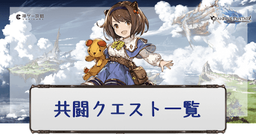 グラブルの共闘クエストにて挑戦できるバトルを一覧形式で紹介。共闘クエストの攻略だけでなく、「双剣士の証」などジョブの証が共闘クエストのどこで入手できるかや「英雄武器」などのドロップ情報も掲載しているので参考にどうぞ。