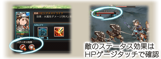 パーティメンバーや敵に発動し、対象の能力や状態を変化させる効果。奥義、アビリティ、召喚、特殊技など様々な原因で付与される。