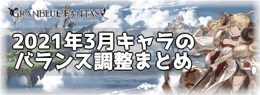 グラブルで2021年3月にアップデート予定の「3月のバランス調整」のまとめ。バランス調整が実施されるキャラの一覧や各調整の雑感なども紹介しているので参考にどうぞ。