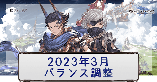 グラブルで2023年3月に発表されたバランス調整の内容を掲載。土風闇キャラそれぞれについて調整前後の性能を比較し、各調整に対する評価もしているので育成・運用の参考にどうぞ。