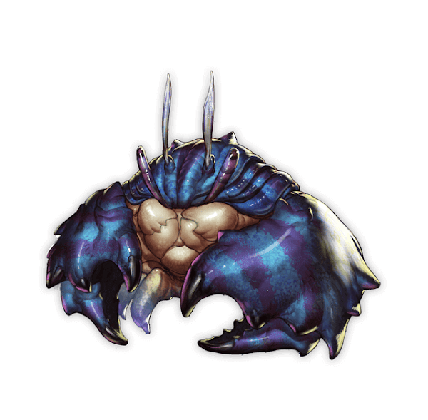 | フレーバー | 淡く輝く甲殻と、頑丈な鋏が特徴。発達した鋏の一撃は、鍛えた武具すら割り砕くこともあるほど力強い。 |