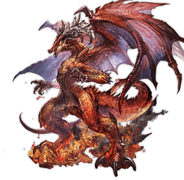 | 効果 | 火属性15回ダメージ(上限約7.6万×15回) 敵全体の火傷Lvが1上昇(最大10) 火属性キャラの与ダメージ上昇(最大100,000/1ターン) ◆参戦者が合体召喚不可使用間隔9ターン 初回召喚3ターン後 |
