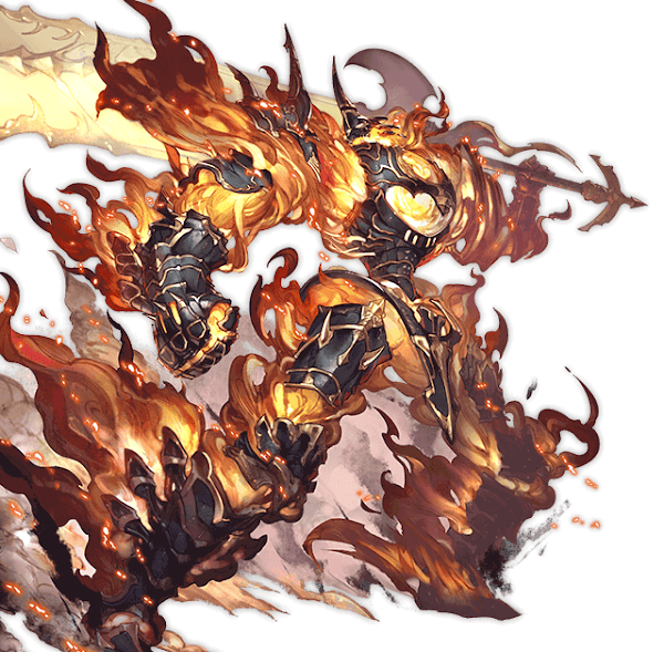 | 効果 | 敵全体に火属性9倍ダメージ/暗闇効果(3ターン) 火属性キャラに業火の刻印を付与/火属性攻撃UP ◆参戦者が合体召喚不可使用間隔9ターン 初回召喚3ターン後 |