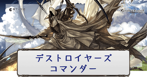 グラブルのレジェンドガチャにて出現する、土属性SSR召喚石「デストロイヤーズコマンダー」の性能評価を解説。加護・召喚時効果・ステータスなどの固有データも掲載。入手した際の参考にどうぞ。