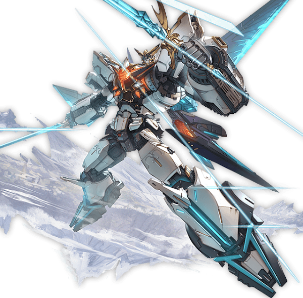 古の因果を断ち切るため、空を守る5人の意志は青と白の巨躯を繰る。闇の炎をまとった剣の一撃は黒き理を両断し、未来ある子供達のために蒼き空を取り戻す。 |