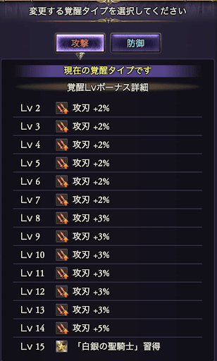 覚醒Lvはタイプ変更の際に素材は必要ないが、一度タイプを変更すると強化段階が0にリセットされる点に注意するべきだ。強化前に目当てのタイプにしているかの確認は必ず行おう。