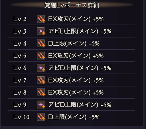 おすすめ覚醒:攻撃・足りない基礎火力を攻撃覚醒で補える ・クリ確定用に1本採用する選択肢が生まれた ・奥義軸とクリ確定を両立可能 |