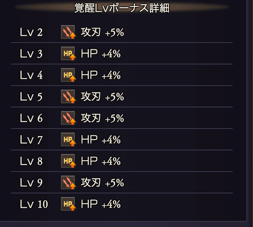 | 覚醒Lv | 必要経験値(累計) | 必要個数(累計) |