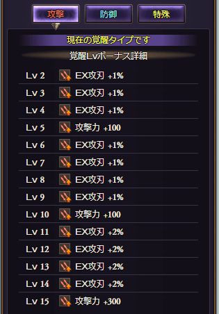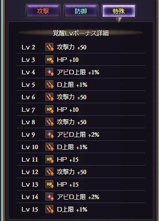 | 覚醒LvMAXまでに必要な経験値:1500 | |