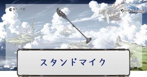 グラブル(グランブルーファンタジー)に登場するイベント武器のひとつ、風属性SR杖「スタンドマイク」の性能評価。奥義・スキル・ステータスと評価を掲載。必要本数も紹介しているので入手時や編成時の参考にどうぞ。