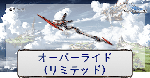 グラブル(グランブルーファンタジー)に登場するリミテッド武器のひとつ、ゼタ(リミテッド)のキャラ解放武器、火属性SSR槍「オーバーライド」の性能評価。奥義・スキル・ステータスと評価、最終上限解放素材の情報を掲載。必要本数も紹介しているのでリミゼタ槍入手時や編成時の参考にどうぞ。
