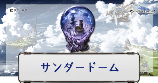 グラブル(グランブルーファンタジー)に登場するイベント武器のひとつ、光属性SSR楽器「サンダードーム」の性能評価。奥義・スキル・ステータスと評価を掲載。必要本数も紹介しているので入手時や編成時の参考にどうぞ。