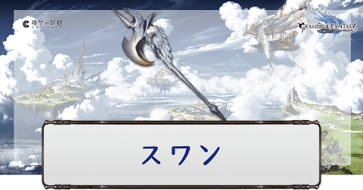 グラブル(グランブルーファンタジー)に登場するリミテッド武器のひとつ、ヴェイン(リミテッド)のキャラ解放武器、風属性SSR斧「スワン」の性能評価。奥義・スキル・ステータスと評価、最終上限解放素材の情報を掲載。必要本数も紹介しているのでヴェイン斧入手時や編成時の参考にどうぞ。