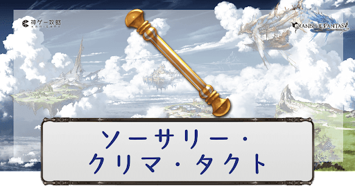 グラブル(グランブルーファンタジー)に登場するコラボイベント武器のひとつ、光属性SSR杖「ソーサリー・クリマ・タクト」の性能評価。奥義・スキル・ステータスと評価、最終上限解放素材の情報を掲載。必要本数も紹介しているのでクリマタクト入手時や編成時の参考にどうぞ。