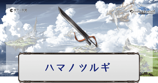「ハマノツルギ」は光属性のEX攻刃武器で、初心者でも手軽に攻撃力を上げられる。メインに装備すると主人公の奥義ダメージを上げられるため、武器が揃っていない段階でもダメージを出しやすい。