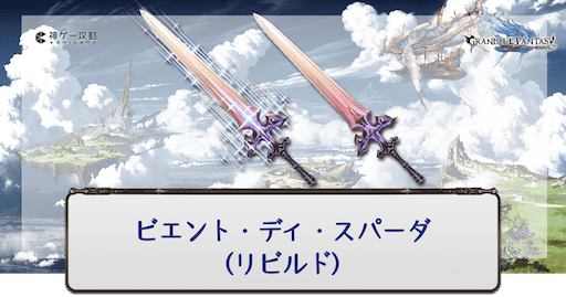 グラブル(グランブルーファンタジー)に登場するレヴァンス武器のひとつ、風属性SSR斧「ビエント・ディ・スパーダ」の性能評価。奥義・スキル・ステータスと評価、最終上限解放素材の情報を掲載。必要本数も紹介しているのでシエテ斧入手時や編成時の参考にどうぞ。