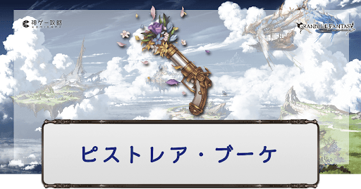 グラブル(グランブルーファンタジー)に登場するハロウィンガチャ武器のひとつ、エッセル(ハロウィン)のキャラ解放武器、水属性SSR銃「ピストレア・ブーケ」の性能評価。奥義・スキル・ステータスと評価を掲載。必要本数も紹介しているのでエッセル銃入手時や編成時の参考にどうぞ。