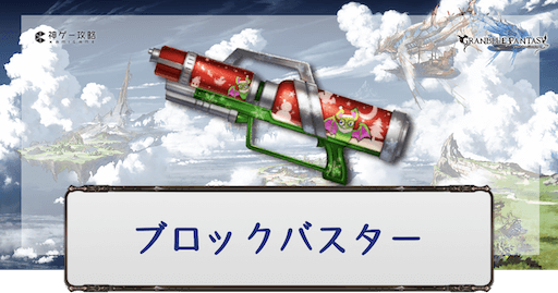 グラブル(グランブルーファンタジー)に登場するクリスマスガチャ武器のひとつ、イルノート(クリスマス)のキャラ解放武器、光属性SSR銃「ブロックバスター」の性能評価。奥義・スキル・ステータスと評価を掲載。必要本数も紹介しているのでクリスマスイルノート銃入手時や編成時の参考にどうぞ。