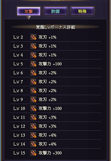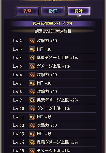 | 覚醒LvMAXまでに必要な経験値:1500 | |