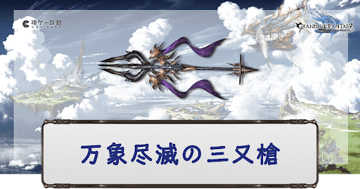 グラブル(グランブルーファンタジー)に登場する破壊武器のひとつ、土属性SSR槍「万象尽滅の三又槍」の性能評価。奥義・スキル・ステータスと評価、最終上限解放素材の情報を掲載。必要本数も紹介しているので万象槍入手時や編成時の参考にどうぞ。