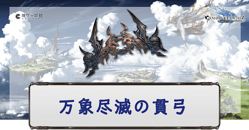 グラブル(グランブルーファンタジー)に登場する破壊武器のひとつ、光属性SSR弓「万象尽滅の貫弓」の性能評価。奥義・スキル・ステータスと評価、最終上限解放素材の情報を掲載。必要本数も紹介しているので万象弓入手時や編成時の参考にどうぞ。
