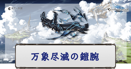 グラブル(グランブルーファンタジー)に登場する破壊武器のひとつ、風属性SSR格闘「万象尽滅の鎧腕」の性能評価。奥義・スキル・ステータスと評価、最終上限解放素材の情報を掲載。必要本数も紹介しているので万象拳入手時や編成時の参考にどうぞ。