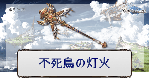 不死鳥の灯火はメイン武器としての性能が非常に強力で、周回高難度フルオート全てで使い道があるため、最終的にはマグナ神石問わず1本揃えよう。ジョブはマナダイバー、キャラはリミパーシヴァルと非常に相性が良く、幅広く使いやすい。
