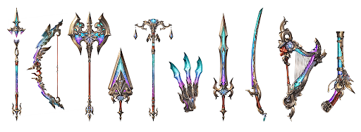 「十天光輝の武器」は、ジョブスキン「十天の極みに至りし者」やルシHLの全属性ソロ討伐称号などを手に入れると、ショップのトレジャー交換から交換可能になる。