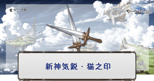 グラブル(グランブルーファンタジー)に登場する恒常ガチャ武器のひとつ、シュクラのキャラ解放武器、水属性SSR短剣「新神気鋭・猫之印」の性能評価。奥義・スキル・ステータスと評価、最終上限解放素材の情報を掲載。必要本数も紹介しているのでシュクラ短剣入手時や編成時の参考にどうぞ。
