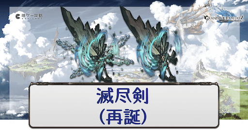 グラブル(グランブルーファンタジー)に登場するレヴァンス武器のひとつ、火属性SSR剣「滅尽剣」の性能評価。奥義・スキル・ステータスと評価、最終上限解放素材の情報を掲載。必要本数も紹介しているのでムゲン剣入手時や編成時の参考にどうぞ。