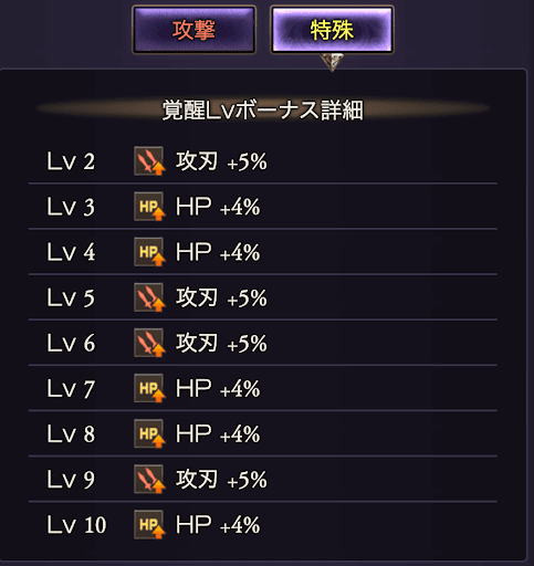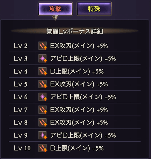 | 覚醒タイプ別の効果一覧 | |